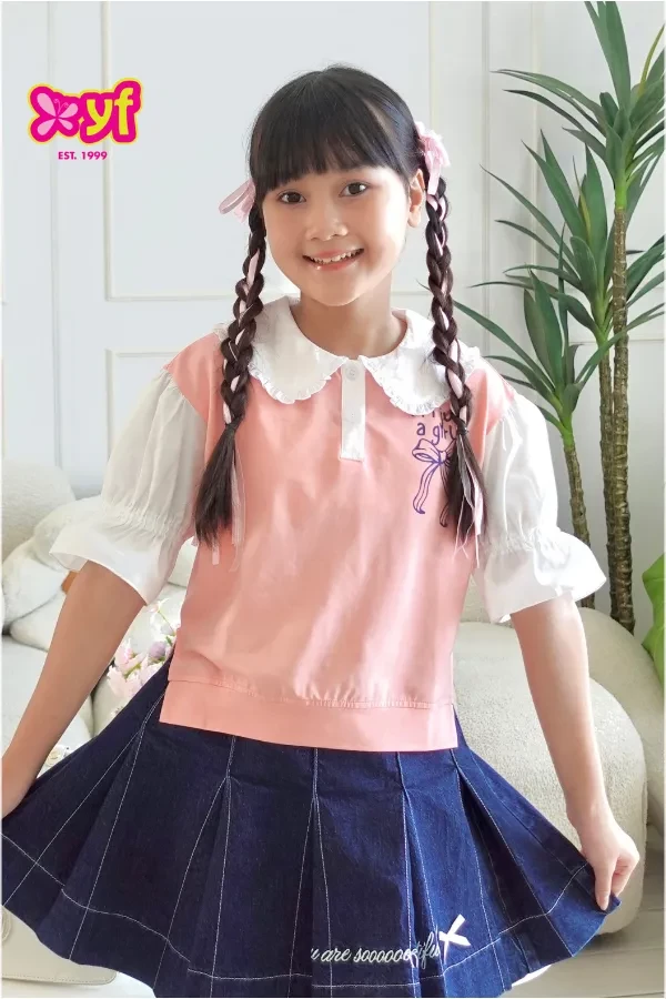 Áo thun cổ sen tay phồng bé gái YF TAX037-4