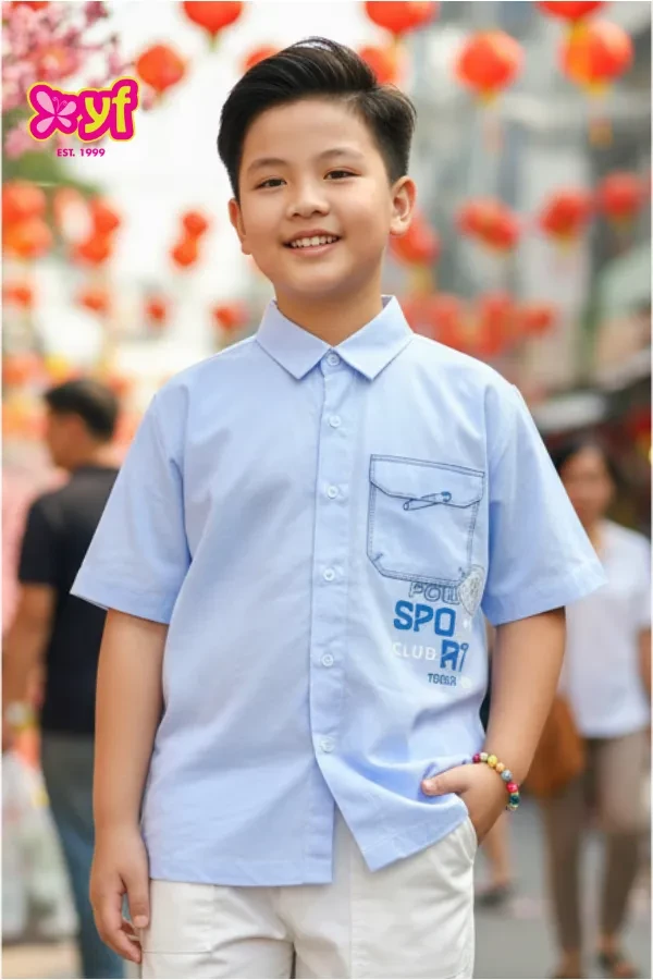 Áo sơ mi bé trai trang trí túi YAY033-5